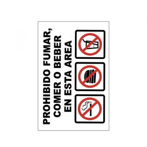SEÑAL DE VINIL PROHINIDO FUMAR, COMER O BEBER 20X30CM -