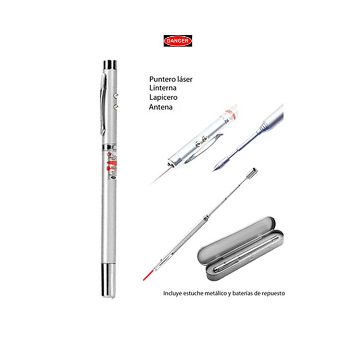 - Uso: 4 en 1 (Puntero láser, linterna, lapicero y antena)